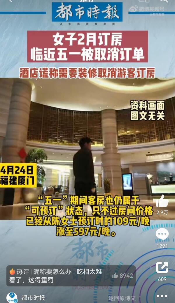 眼下正是五一小长假,酒店住宿成为游客们关注的焦点问题。近期,五一酒店涨价毁约等话题也频频冲上热搜。