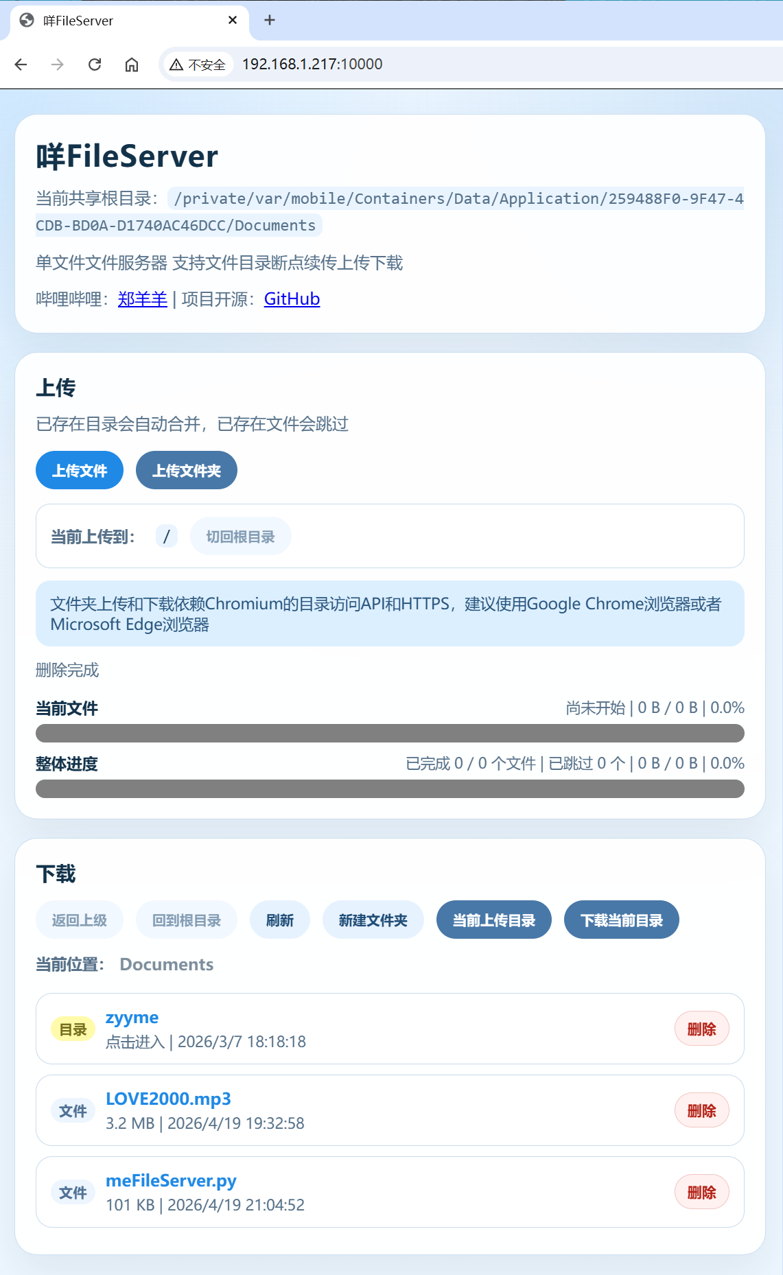 可以开启简单的密码鉴权,可以在 ios 的 a-shell mini 上使用 wasm 的 Python3 运行