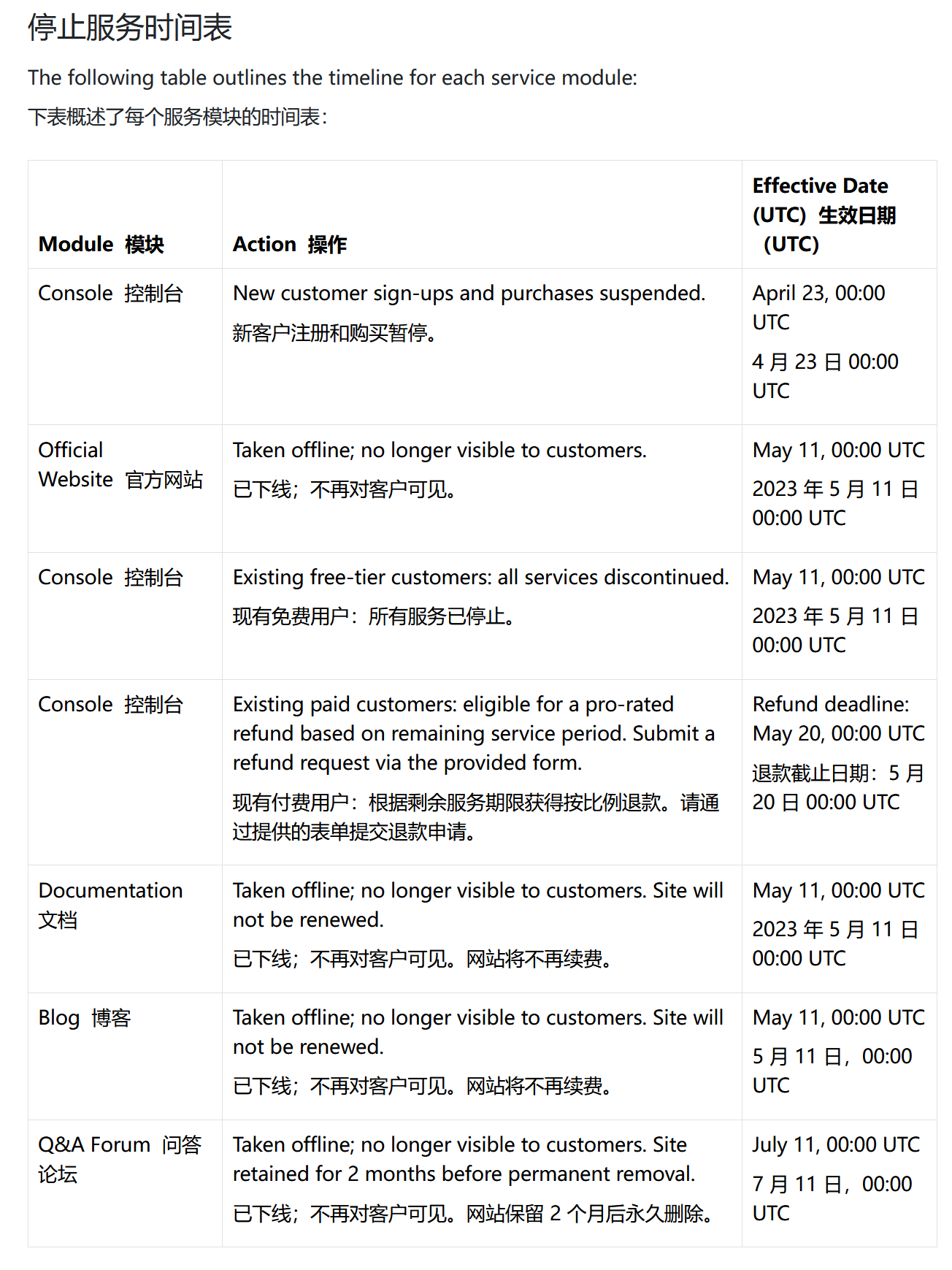 经过慎重考虑,我们艰难地做出了停止我们的产品和相关服务的决定。我们真诚地感谢您一路以来的信任和支持。本通知提供了完整的过渡时间表和详细信息,以帮助您相应地计划。