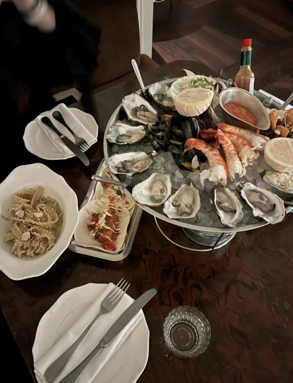 最后一张照片,是王诗龄分享自己的食物,我本人没吃过西餐,不知道这里面的门道,要是我没猜错的话,王诗龄吃的这东西应该是生蚝和虾,妥妥的海鲜大餐了。
