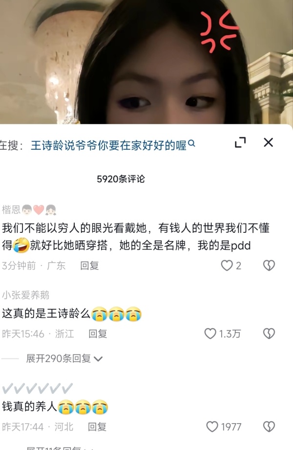 她有钱大家都知道,或者说她的爸爸妈妈在中国赚了大钱,大家心知肚明,所以王诗龄哪怕在国外潇洒,网友们也都能理解。