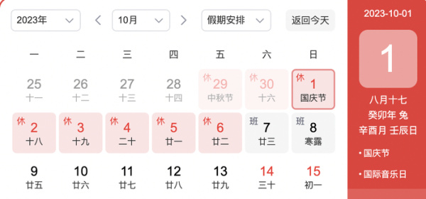 原来,今年中秋国庆相遇了,将连放8天假,节前不调休,节后首个周末两天都要上班。
