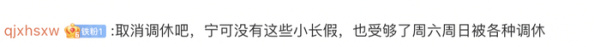 也有网友认为,调休也让没那么难以接受,对于一些离家在外的人来说,放假3天意味着可以回家。