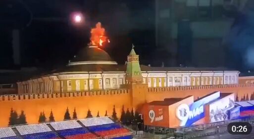 (俄新社5月3日称,社交媒体上流传的视频显示,这是无人机试图袭击克宫的画面。)