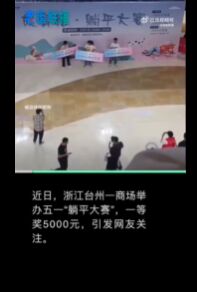 近日,浙江台州一商场举办五一“躺平大赛”,引发网友关注。据商场工作人员介绍,五月一日商场当天确实举办了该比赛,大约有一百多人报名,每个报名者都可以免费获得一条瑜伽垫。最后由三个人分掉一万元奖金,但奖金“并没有那么容易获得”。“比赛是有要求和一定的难度的,参赛者不可以动也不能睡着。随着时间的推移,比赛难度还会变大”。商场还表示,比赛初衷不是宣传大家躺平,而是“反焦虑”。