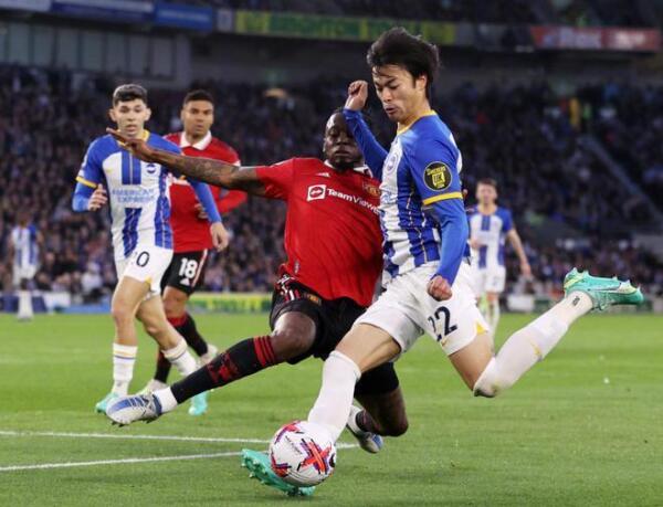 第4分钟,三笘薰抢断得手,突入禁区推射被德赫亚扑出。第13分钟,三笘薰接恩西索斜传,低射打门偏出。三分钟后,三笘薰左路带球狂奔被比萨卡挡出底线。第17分钟,韦伯斯特禁区头球攻门未能攻破德赫亚十指关。两分钟后,三笘薰禁区内倒地,裁判未予理会。第20分钟,安东尼接马夏尔传球射中边网。