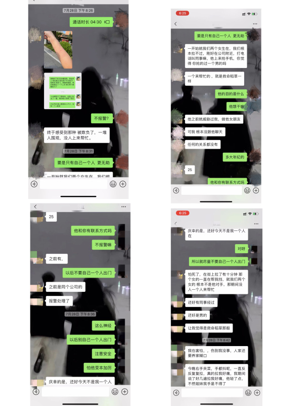 相关聊天截图显示,事发后,陈某萍和朋友在微信聊天时表示,当时,黄某南拉她上衣时,她看到了刀,感到非常害怕,幸好有同事出手相助。“他之前就威胁过我,做他女朋友。可我根本没跟他聊天,任何关系都没有。”