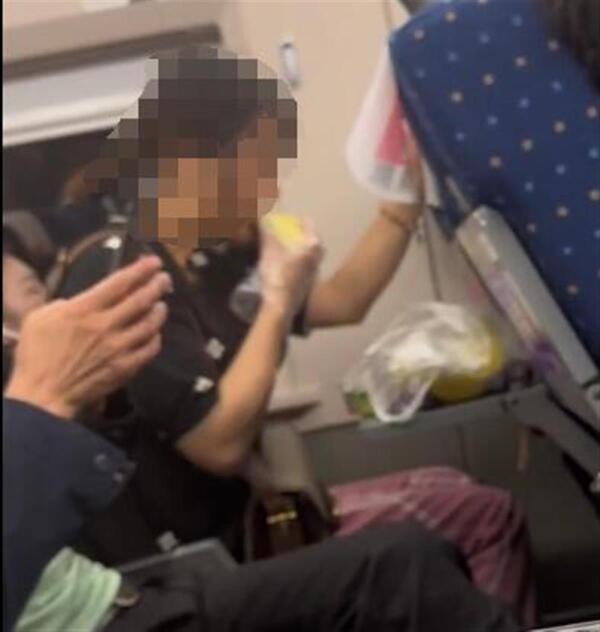 女子疑似在高铁车厢内吃榴莲(来源:视频截图)