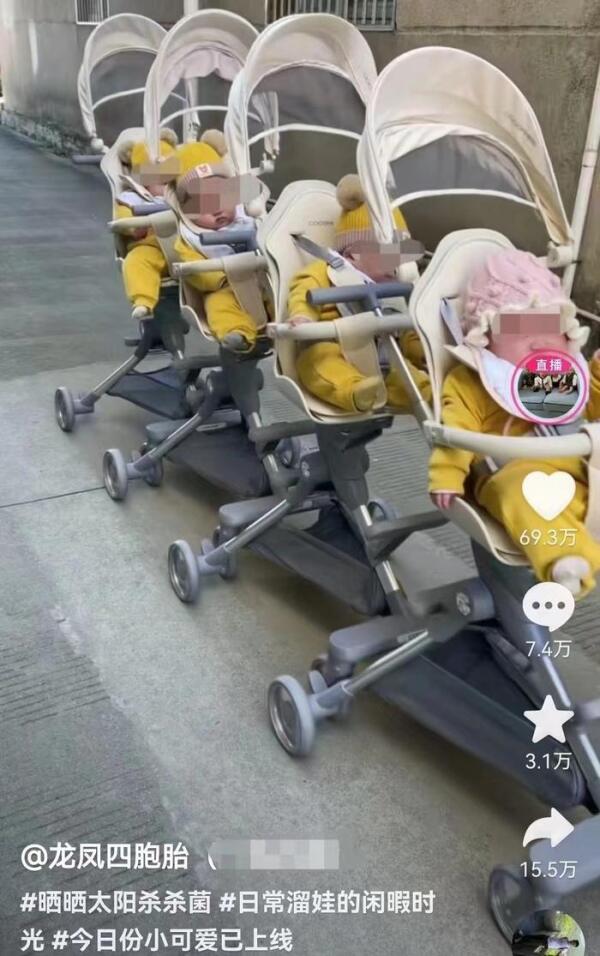 去年6月,浙江一位31岁的四胞胎妈妈成功分娩一女三男,引发众多网友关注。之后,四胞胎妈妈郝女士因经常在短视频平台晒四胞胎每天日常生活片段、记录宝宝们的成长过程而走红。今年4月中旬,郝女士在短视频平台上向网友宣称,自己又怀孕了,而且还是四胞胎!