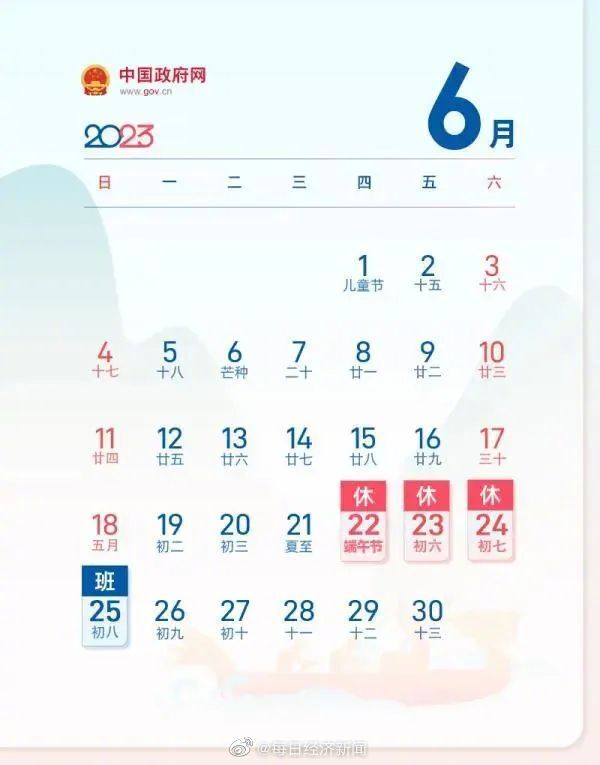 据每日经济新闻消息,五一调休才刚刚熬完,有网友发现,今年端午节是6月22日-24日放假,25日(周日)上班。需要连上6天班。而今年中秋国庆假期“合体”,形成8天的超级黄金周,但节后需要连上7天班。9月29日至10月6日放假调休,共8天。10月7日、10月8日上班。