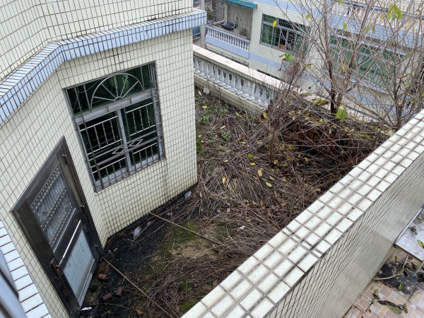 2023年4月8日,该楼栋的停车管理员夫妇黄惠忠、杨芬向澎湃新闻表示,他们在这工作十多年,602一直空置。记者现场看到,602天台铁门锁着,站在天台边缘往下看,阳台上堆着枯枝、淤泥。