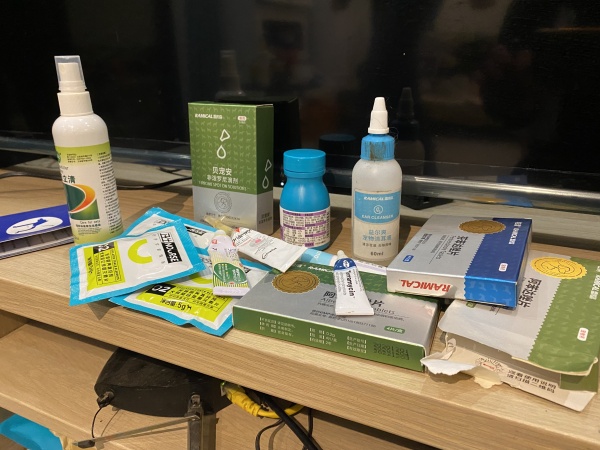 贺捷说,每隔三四天,他们会清理天台的粪便。周末天气好的时候,他们会给自家的“香香”和两条萨摩耶在天台上洗澡,帮萨摩耶剪掉打结、粘在脓皮里的毛,顺带抹药、打消炎针。