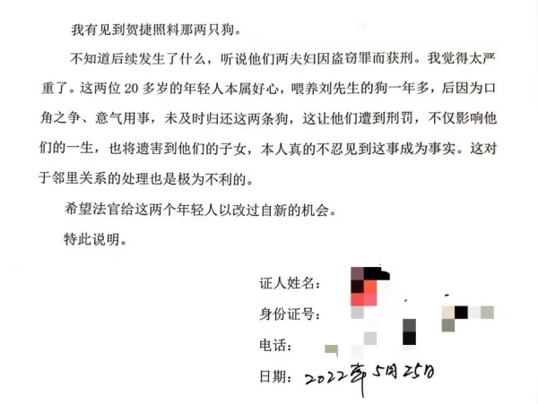 一审判决后,刘炳忠在一份2022年5月27日写的情况说明中表示,把狗养在602天台后,他很少到602天台。发现马国良与贺捷打扫了粪便、经常照顾两条狗后,自己就没怎么管它们了。他也从未明确告知过对方狗是他的,“这样他们就可以经常帮我照顾(犬只)。”他依稀记得,有一次见一女子投喂狗食,他曾提醒她要注意安全、不要被狗咬到,“但我当时并没有告诉她我就是狗的主人”。