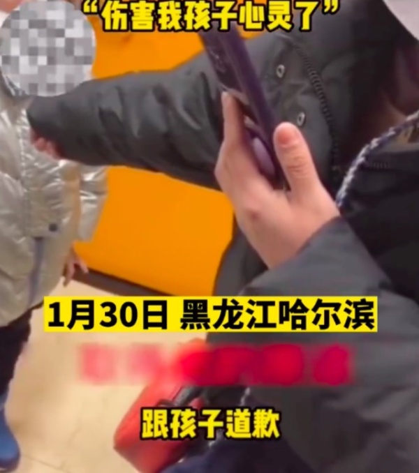 拍摄视频的女子问道:“我为什么要取得他的原谅?”孩子妈妈说:“因为你给他说哭了。”