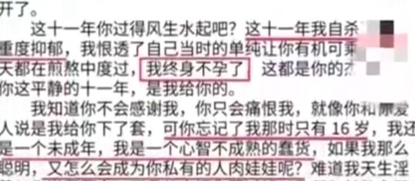 该网称,王某某老师对其精神控制两年半,当时她才16岁,还是在校学生,强行发生关系后,她怀孕被带去流产致终生不孕。