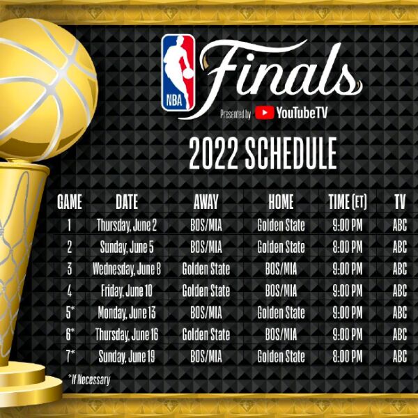 2022年总决赛赛程已经确定,G1将于6月3日开打,6月6日G2开打,前两场都在勇士主场;6月9日G3和6月11日G4,这两场都在绿军主场;如有必要的话,G5对阵在6月14日、G6在6月17日和G7在6月20日,今年总冠军最早6月11日诞生,最晚6月20日诞生。