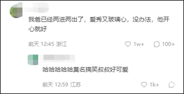 该网友分享此事后,评论区有网友晒出“同款退群爸爸”:我爸已经两进两出了,爱秀又玻璃心,没办法,他开心就好!