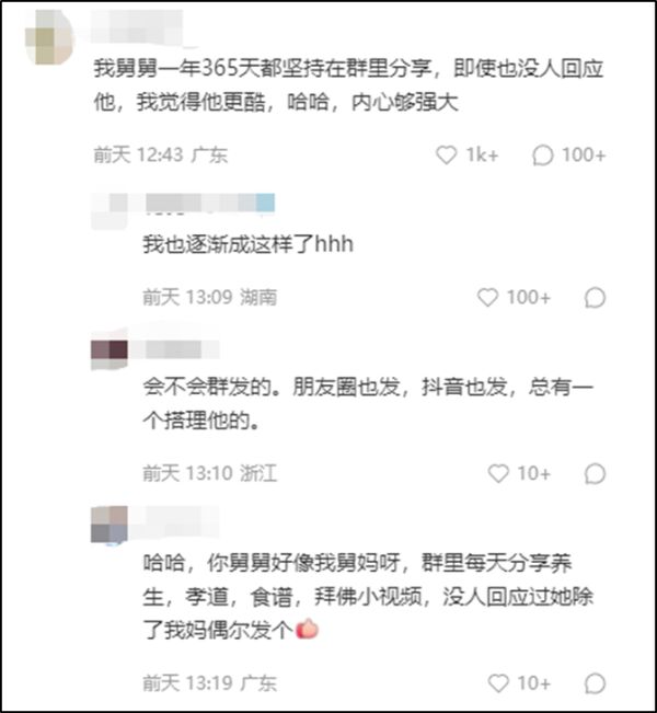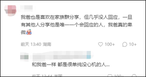 也有网友感慨:我爸真卑微,分享到家族群,但几乎没人回应!