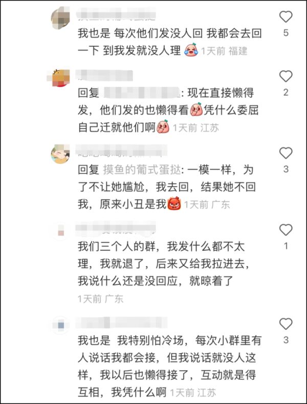除了父母辈,当代年轻人也有和朋友分享却无人回应的遭遇: