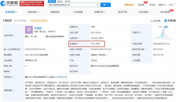 值得一提的是,该公司注册资本1000万人民币,实缴资本仅为5万人民币。