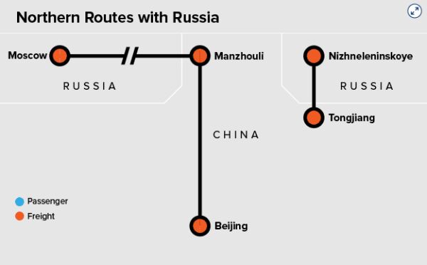 此外,CNBC还制作了中国与俄罗斯连接的北线、与蒙古国连接的北线以及将中国西部和中亚地区连接起来的西线。