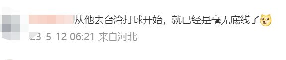 有网友说,从他去台湾打球开始,就已经是毫无底线了。