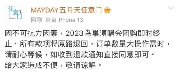 5月6日傍晚,粉丝团运营方发现后台出现了大量0秒创建的异常订单,疑有黄牛混入了粉丝团抢票。还有五月天歌迷发现,在一些二手交易平台出现了“五月天团票代拍”的商品。有歌迷怀疑,团票因为利益问题被倒卖给黄牛,于是举报。随后,三大粉丝团前后宣布取消今年的团票,已经购票的也全部原路退款。
