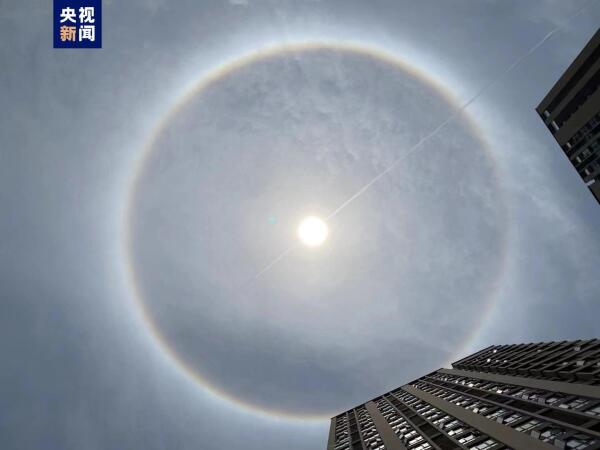 导读:5月13日11时左右,武汉的天空出现日晕,很圆很清晰。据了解,日晕是一种常见的天气现象,多出现在春夏季节。