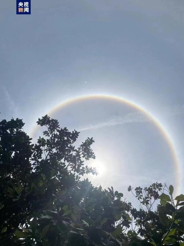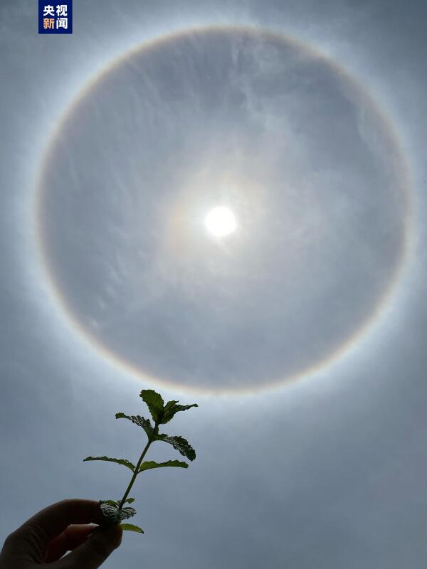 气象部门提醒:观看日晕景观时,尽量避免长时间直视太阳,以免眼睛被灼伤。