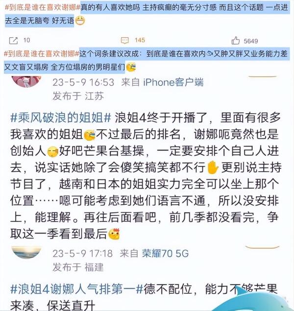 自从《浪姐4》开播后,谢娜一直是观众和网友热议的话题,无论是《菠萝蜜》还是《龙拳》,网友们对她的票数和人气都怀有质疑的态度。