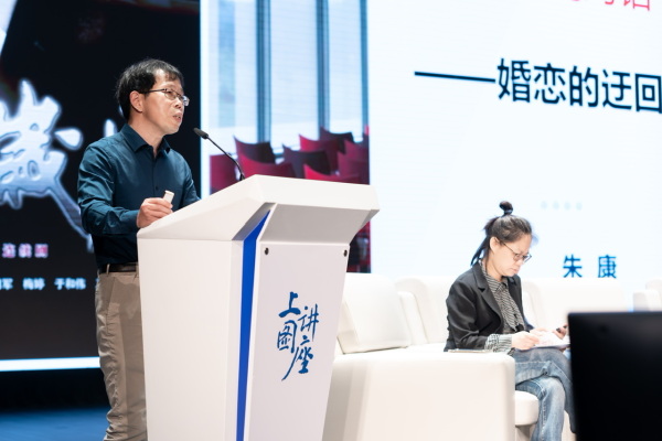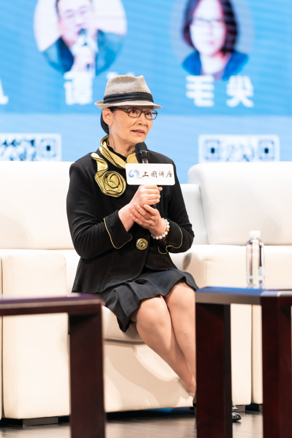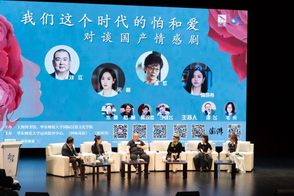 这场对谈是上海图书馆与华东师范大学国际汉语文化学院合作的“阅剧·观剧”第一期。活动分为上下半场,由华东师范大学教授毛尖、影评人谭飞主持。上半场,朱康、罗萌、黄锐杰、丁雄飞等学者、媒体人围绕刘江20年来的电视剧创作发表报告,更像是一场学院派的研讨会;下半场,潘虹、宋茜、陈妍希三位剧中女演员登场,又让现场变身主创见面会,“混搭”出了一场学术性与大众性融合的别具一格的阅读活动。