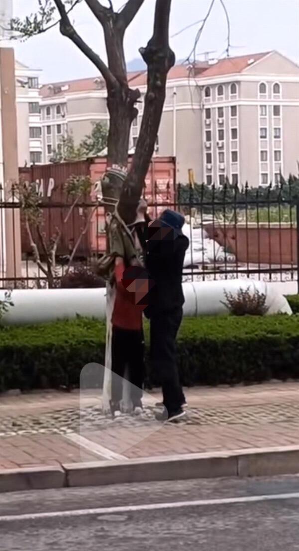 导读:5月13日,山东威海一男子将一个小男孩当众绑在路边树上,之后还扒掉其裤子。极目新闻记者从辖区派出所了解到,二人系父子,警方已前往处理。