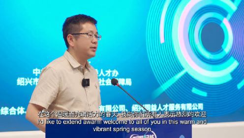 “I'd like to extend a warm welcome to all of you in this warm and virbrant spring season.Backed up by Hangzhou Bay,Keqiao......(在这个温暖而充满活力的春天,我向你们表示热烈的欢迎。柯桥地处杭州湾大湾区黄金腹地......)”