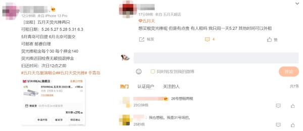 当粉丝们还在花式求票时,演唱会官方销售的荧光棒已经“卖疯了”。