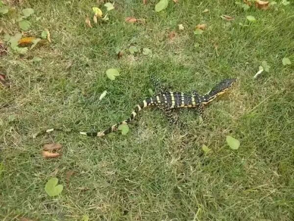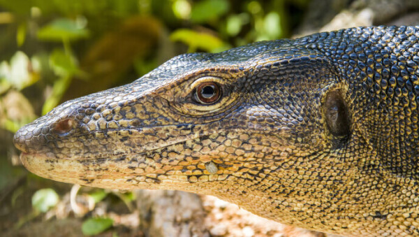 圆鼻巨蜥是我国国家一级保护野生动物,属蜥蜴目巨蜥科爬行动物,栖息于山区的溪流附近或沿海的河口、山塘、水库等地,主要分布在南亚和东南亚一带,我国的广东、广西、海南、云南等地均有分布。圆鼻巨蜥一般身长1米到2米,体重可达20千克至30千克,因为身上长有黄色斑纹,又称“五爪金龙”,其寿命可达150年。
