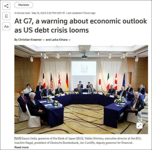 澳新社称,此次财长会议正值美国潜在的债务违约加剧了对于全球前景的担忧,而在此之前,全球经济前景已经笼罩在顽固高通胀和美国银行危机的阴云之下。