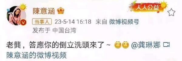 “老龚,答应你的倒立洗头来了。”陈意涵说道,为了表明自己没有说谎,而是认真地履行了承诺,陈意涵还专门录了个视频。