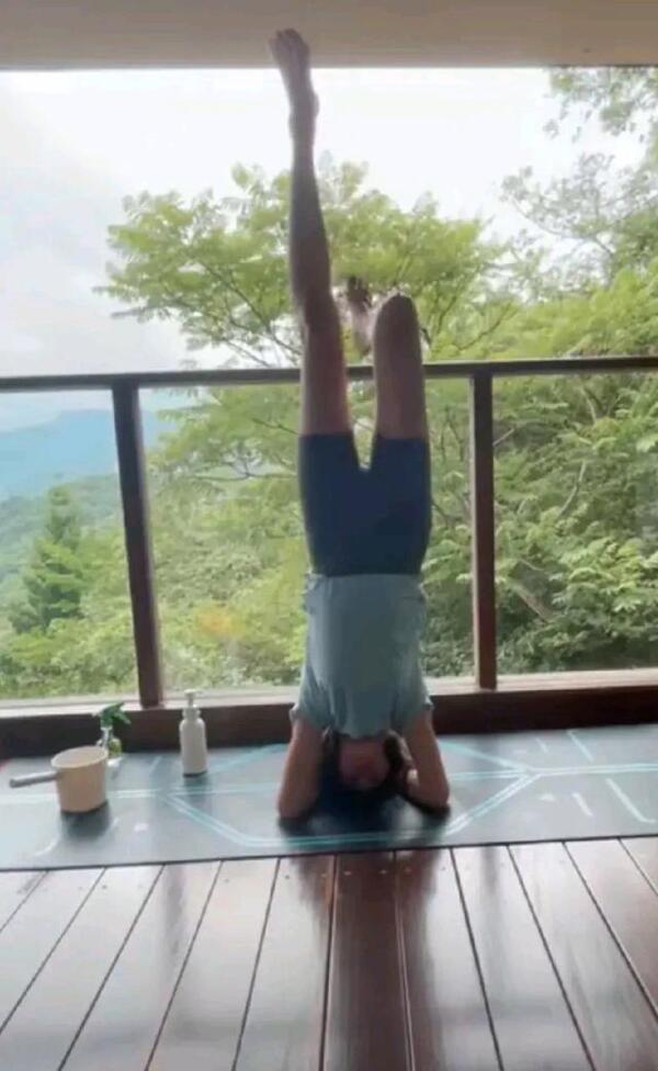 阳台的护栏高度大概只有半人高,陈意涵在瑜伽垫倒立,瑜伽垫就放在护栏边,陈意涵如果失去平衡一不小心就会掉出阳台。人在倒立的时候,不容易把控身体,难怪网友都很担心有危险。