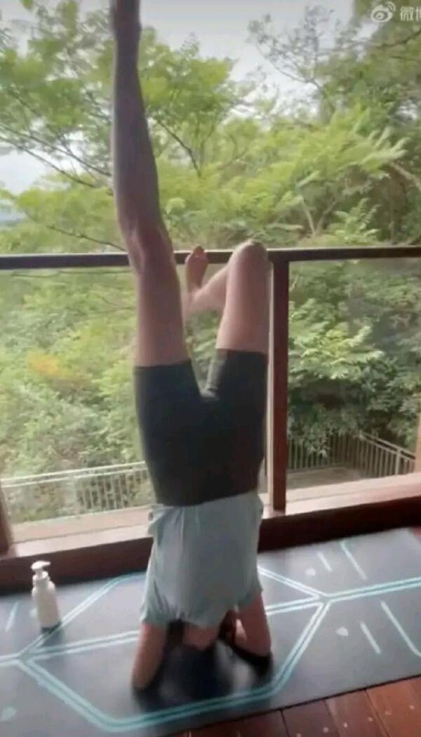 在视频里,陈意涵做了个倒立的动作,她身体的柔软度很好,一下子就完成了这个有点难的动作。