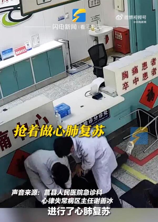 据闪电新闻5月15日报道,近日,山东日照。一名男子在急诊科突发心源性猝死,倒在医生面前!医护人员忙而不乱,教科书式抢救生命,不到两分钟完成抢救。
