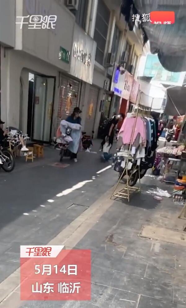 5月14日,山东临沂,一男子当街薅拽着女子的头发往前拖行殴打,被多名路人阻止并报警。