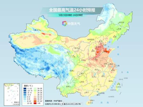 另据中国天气网5月15日消息,今天将是本次高温过程范围最大的一天,热力升级,北方将大面积刷新今年来气温新高,同时也将迎来今年首轮高温天气。