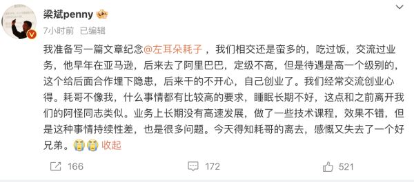 与此同时,陈皓在网络上也非常活跃,经常更新自己的技术思考和想法。比起原名陈皓,他的网名“左耳朵耗子”更为人熟知,还有不少后辈程序员亲切地称呼他为“耗子叔”。由于陈皓在广大程序员群体中拥有广泛的知名度,因此他去世的消息一度登上了微博热搜,大家纷纷表达对他的悼念。
