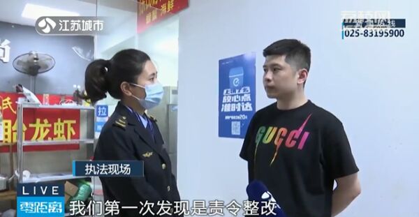 5月15日上午,南京市秦淮区市场监管局五老村分局执法人员对徐氏盱眙龙虾店进行突击检查。面对执法人员,门店负责人表示,目前外卖平台上的确标注的是99元五斤龙虾,承认自己存在严重失误。后期将严格规范外卖标注,足斤足两给顾客供餐。