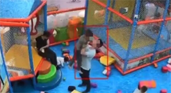 监控视频显示,游乐场内,一男童不慎碰倒女童,该女童家长则3次将男童摔在地上,其中一次还将对方举过头顶后再摔。事发后,男童家长赶来与女童家长发生争吵。