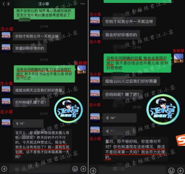 汪小菲得知张颖颖的想法之后,一直都在劝说她不要去打胎。汪小菲还通过语音说自己一直都在规划两人的未来,而且还说张颖颖也知道自己的情况,所以希望张颖颖能够等一等,自己一定会尽力处理的。