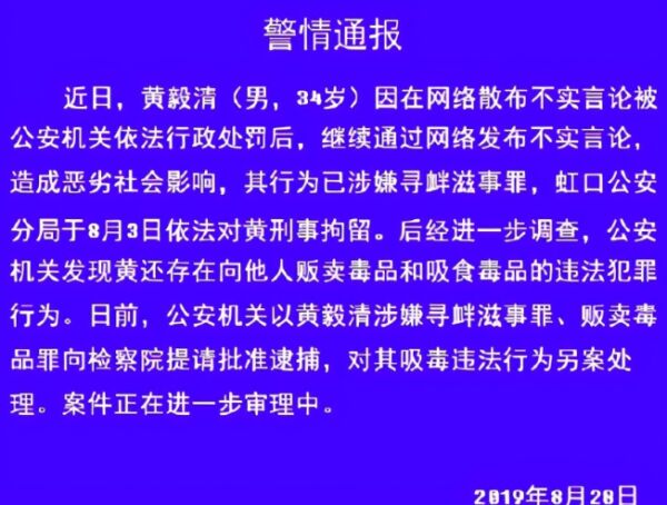 直到2019年,黄毅清因在网上发布不实信息,涉嫌寻衅滋事,加上向他人贩卖DP和吸食DP被逮捕,最终被判处15年。