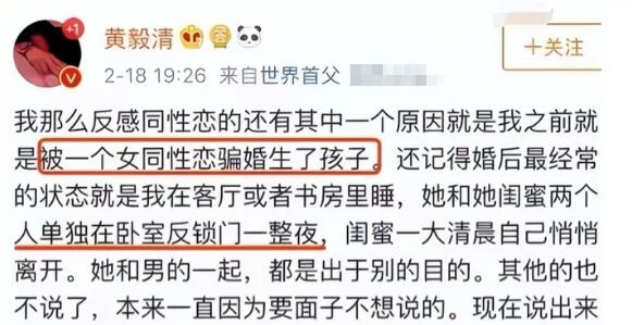 同年7月,黄奕提请离婚,但黄毅清并不愿意结束,而是发文称老婆性取向不正常,自己被骗了。