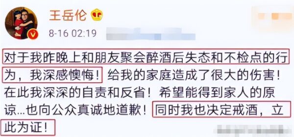 事发后他先是表达懊悔之情,说自己酒后失态、行为不检点,还真诚地向家人道歉了,甚至宣布戒酒,看起来决心还是挺大的。