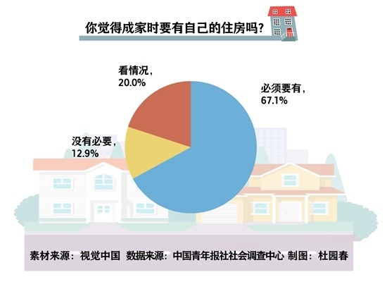 导读:日前,中国青年报社社会调查中心联合问卷网,对1512名35岁以下青年进行的一项调查显示,对于成家时要不要有自己的住房,67.1%的受访青年明确必须要有。